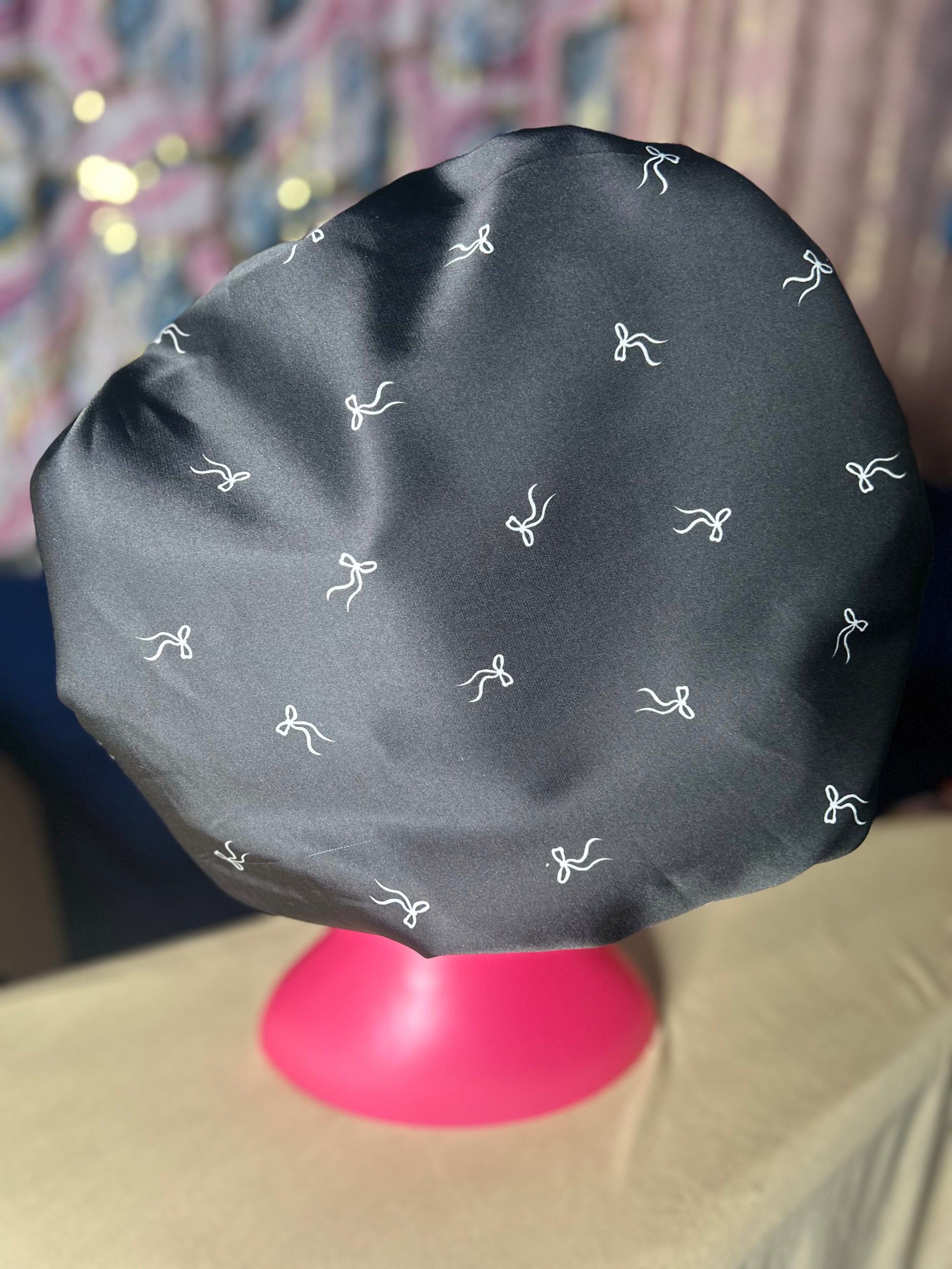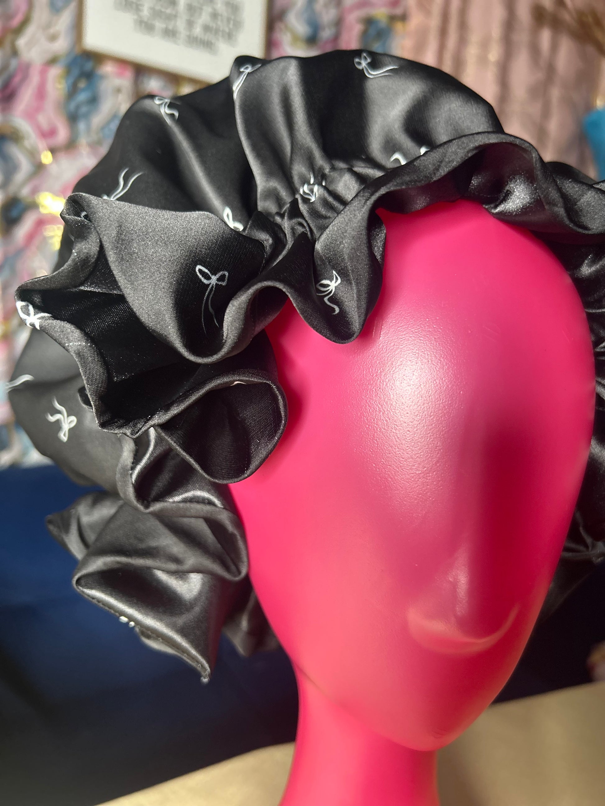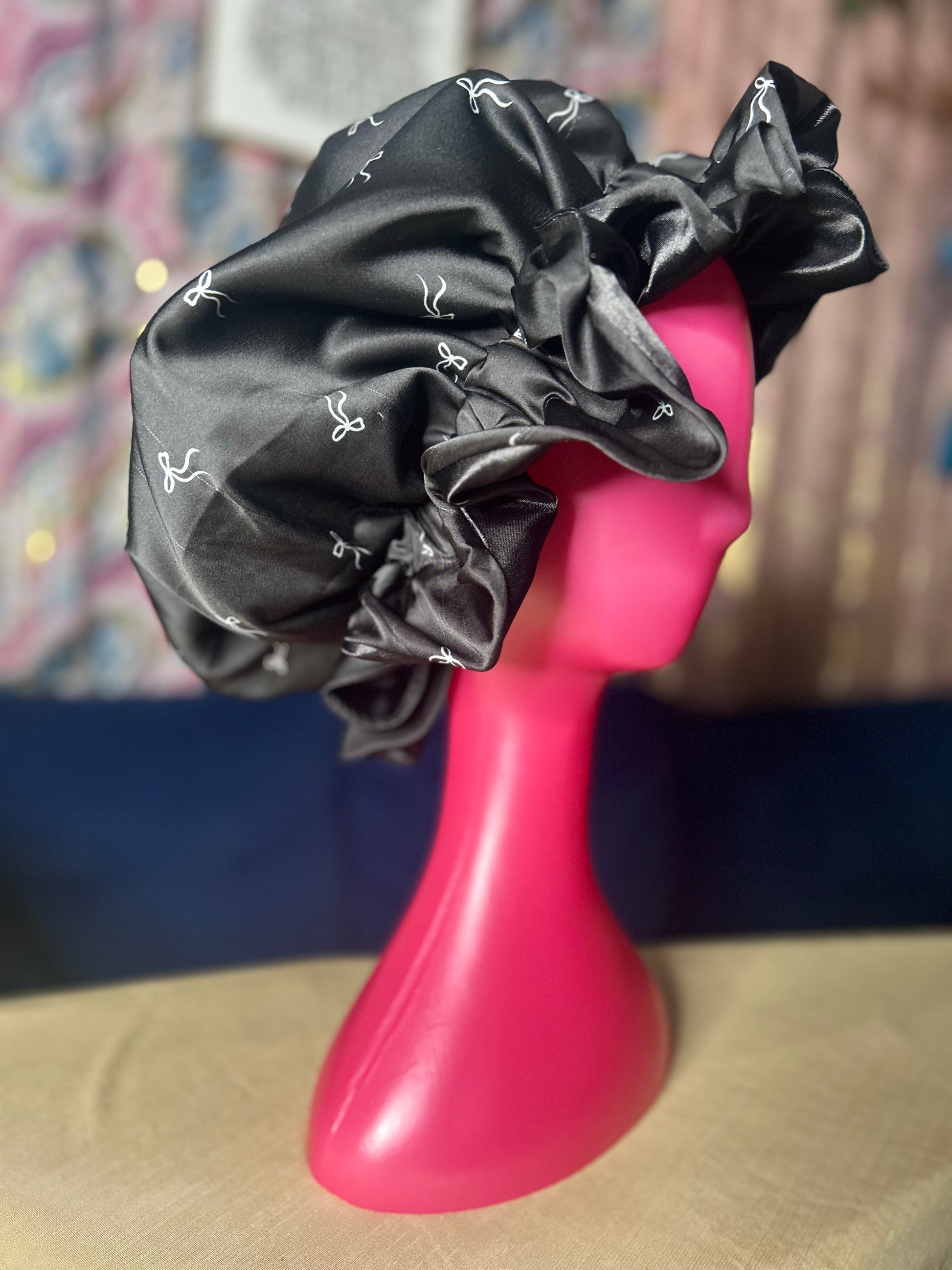 Designed in a deep midnight black satin with soft, subtle white bow accents, this bonnet is the perfect blend of elegance and simplicity—made for the woman who prefers a clean aesthetic but still commands the room when she enters.